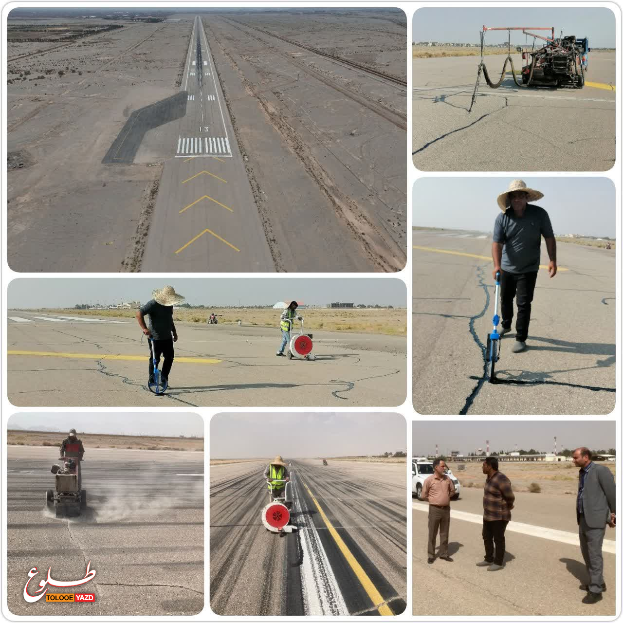 عملیات درزگیری روسازی آسفالت باند فرودگاه بین المللی یزد با هدف حفظ و نگهداری و ارتقاء ضریب ایمنی سطوح پروازی با استفاده از قیر پلیمری به میزان ۴۰ هزار متر طول با اعتباری بالغ بر ۲۰ میلیارد ریال از محل اعتبارات شرکت فرودگاههاوناوبری هوایی ایران انجام شد.