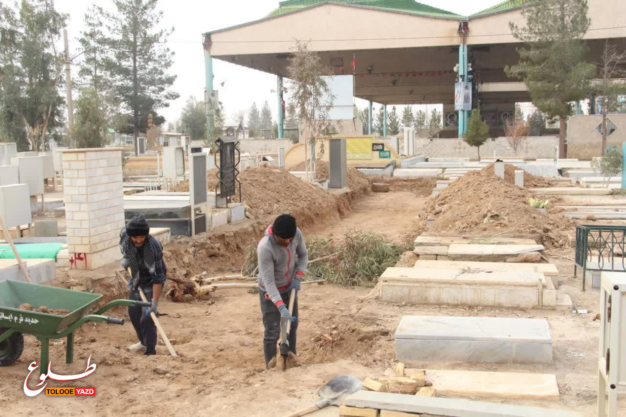 اجرای عملیات همسطح سازی قبور خلدبرین یزد