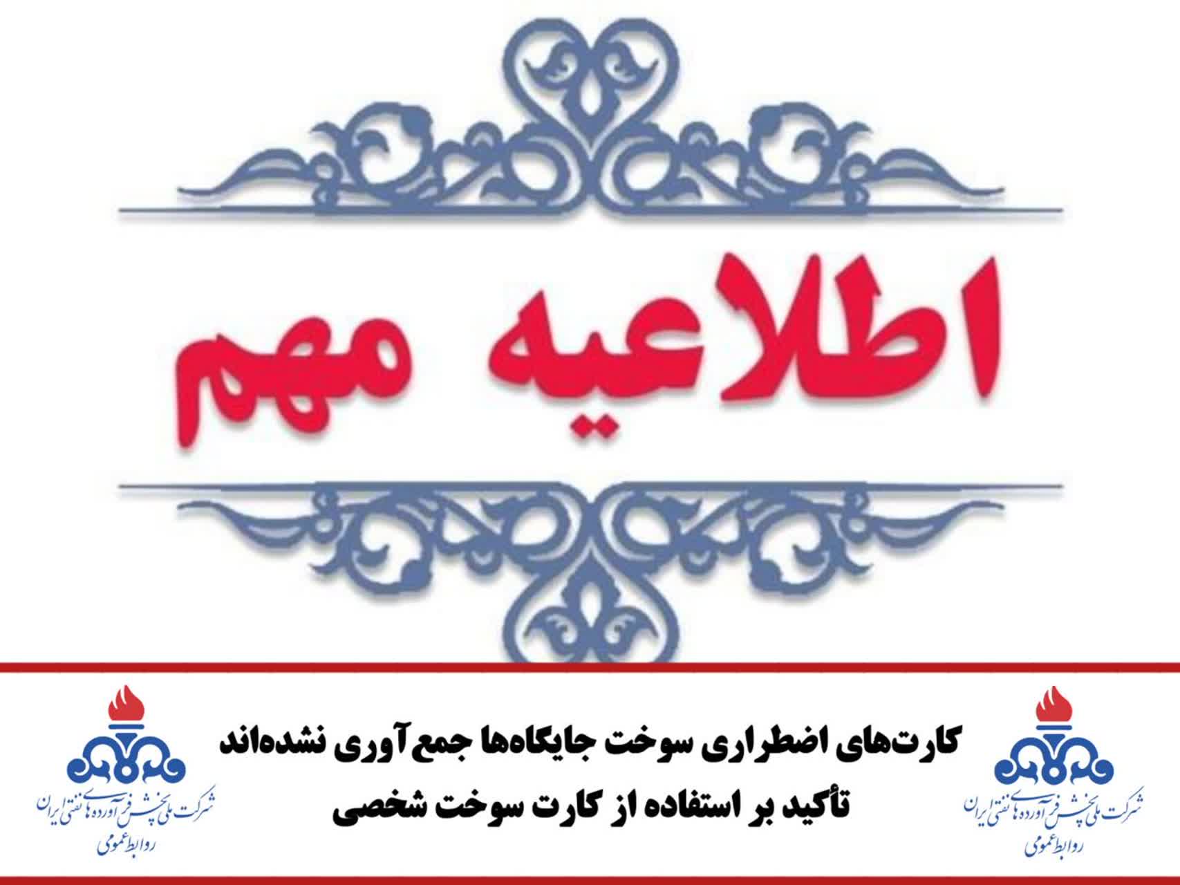 بدین وسیله از مالکان محترم خودروها درخواست میشود برای خدمات رسانی مطلوبتر، در هنگام سوختگیری حتماً از کارت سوخت شخصی خود استفاده نمایند تا کارتهای اضطراری موجود در جایگاهها در شرایط خاص و برای خودروهای فاقد کارت سوخت ، مورد استفاده قرار گیرند.