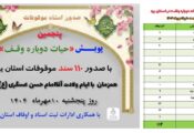 در پنجمین پویش حیات دوباره وقف تعداد ۱۱۴ سند موقوفات استان یزد همزمان با ایام ولادت امام حسن عسگری علیه السلام در واحدهای ثبتی صادر شد.